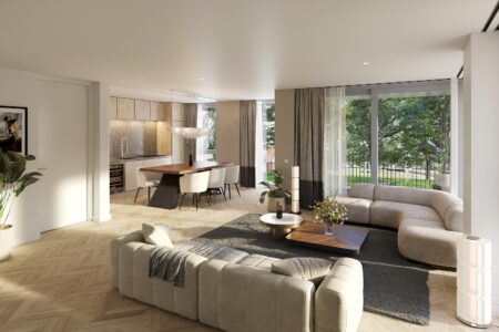 Het gebouw PARKZICHT wordt gerealiseerd op de voormalige locatie van het kerkgebouw. Dit prachtige complex bestaat uit 5 royale appartementen, verdeeld over 3 woonlagen. Inmiddels zijn de contouren van de te realiseren vrijstaande woning aan de westzijde van dit appartement zichtbaar. Parkzicht is een gebouw met veel lichtinval hetgeen een ruimtelijk gevoel geeft, de steenstrips in combinatie met gebrand bamboe als gevelbekleding zorgt voor een natuurlijke uitstraling waarbij het duurzame Cortenstaal de voordeur van het imposante gebouw siert. Op deze unieke locatie omgeven door een parkachtige tuin is het echt comfortabel wonen waarbij de aangrenzende tuin uitnodigt om op elk moment van de dag hier heerlijk te vertoeven.