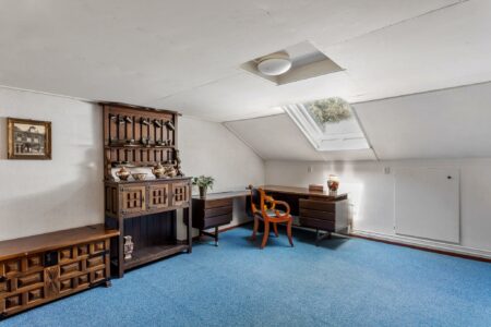 Eerste verdieping: via een open vide kom je op de overloop met toegang tot twee royale (slaap)kamers, beide met dakramen en vaste kastruimte.