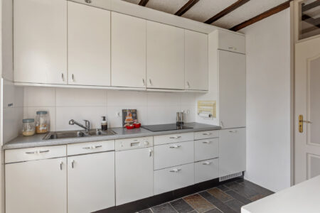 Begane grond: hal/entree, meterkast, garderobe, toilet met fontein, trapkast, doorzonwoonkamer met gashaard, plavuizenvloer met schouw en gashaard en schuifpui naar terras, gesloten keuken met inductiekookplaat, wasemkap, koelkast en vaatwasser, achteringang naar tuin