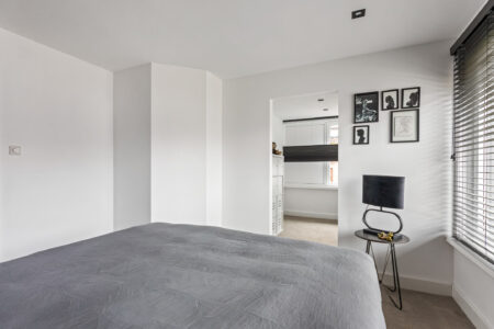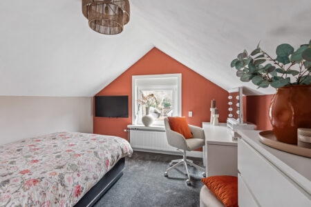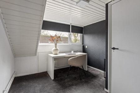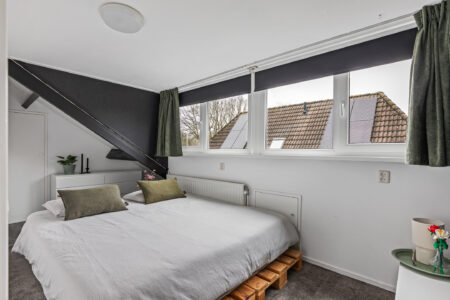 Op de verdieping bevindt zich een overloop met kastenwand en lichtkoepel. Er zijn twee slaapkamers met een dakkapel en twee slaapkamers met een gevelraam. Extra bergruimte is aanwezig achter de knieschotten.