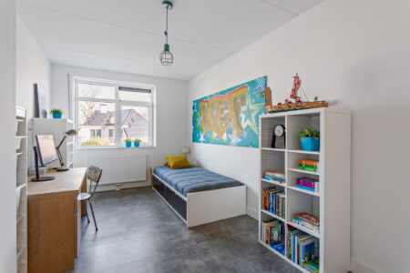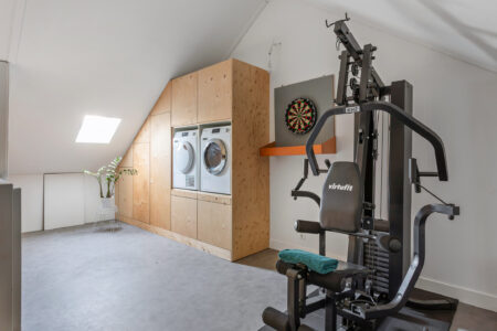 Tweede verdieping: riante zolderverdieping met dakraam en de mogelijkheid om een vierde slaapkamer te realiseren. Momenteel is deze ruimte ingericht als fitness- en wasruimte. Daarnaast is er bergruimte achter de knieschotten, een kastenwand met witgoedaansluitingen en een afgesloten ruimte met de cv-opstelling en mechanische ventilatie.