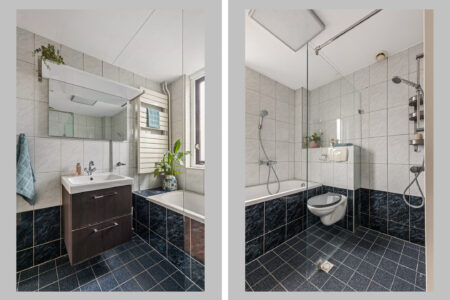 Eerste verdieping: overloop, drie slaapkamers en ruime badkamer met ligbad, wastafelmeubel, inloopdouche en 2e toilet.