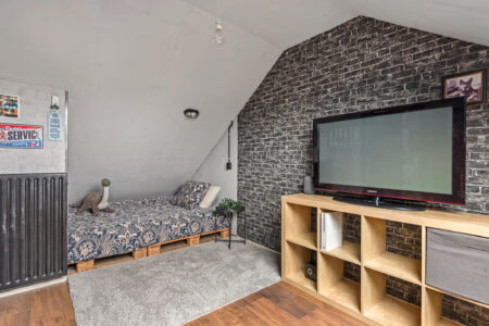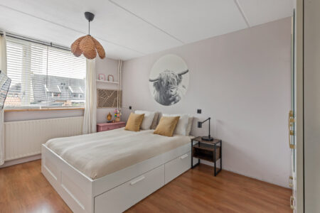 Tweede verdieping; bereikbaar d.m.v. een vaste trap naar zolderruimte met c.v. opstelling, aansluiting voor wasmachine en riante 4e slaapkamer v.v. laminaatvloer en dakraam.